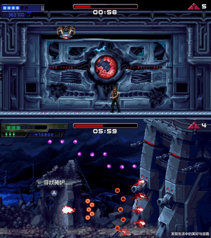 发现游戏中的场景有《魂斗罗》的嗅觉,也算是致意吧。