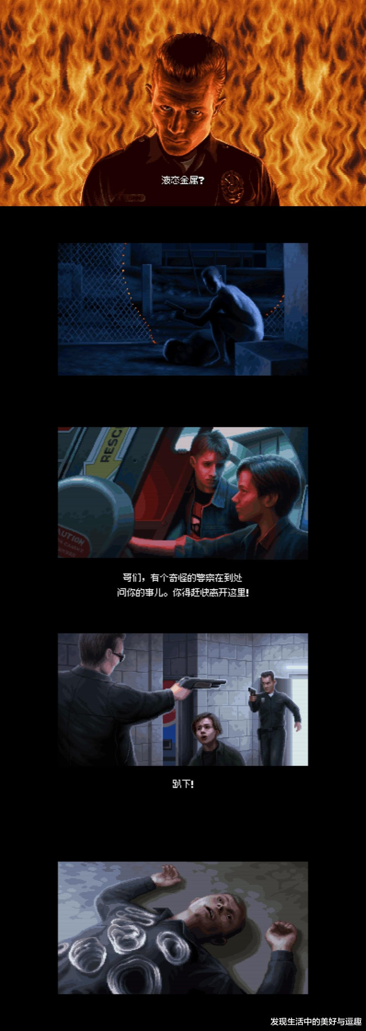 当阿诺饰演的闭幕者被火烧造成一副合金骨架持续追击萨拉·康纳,之后被凯尔·里斯的好处火药炸掉下半身依旧拖着长长的电线匍匐着不依不饶的追着萨拉时,电影院里的我猛然顽强到这是几年前哥哥给我讲的一盘摄像带里的故事啊。